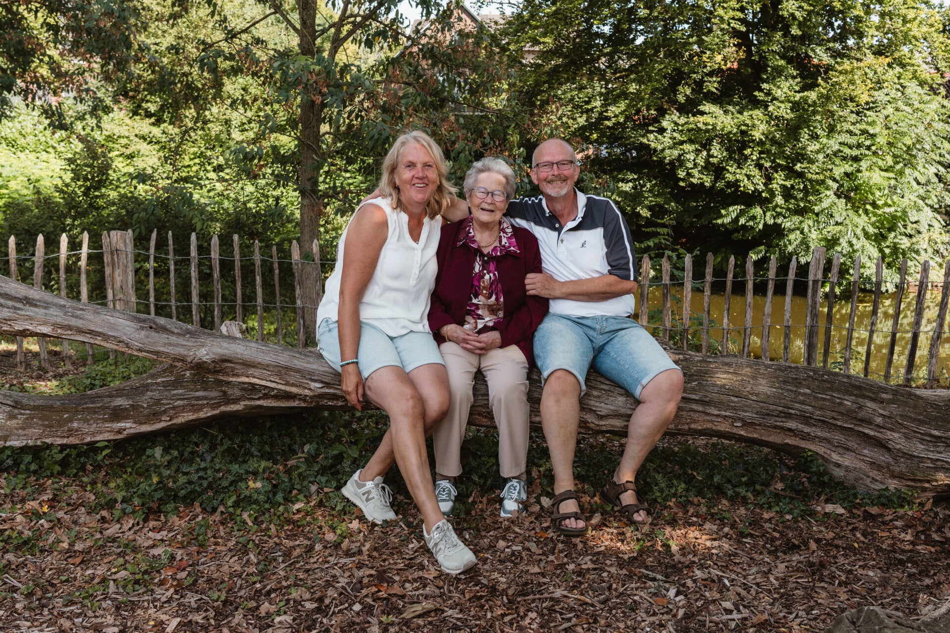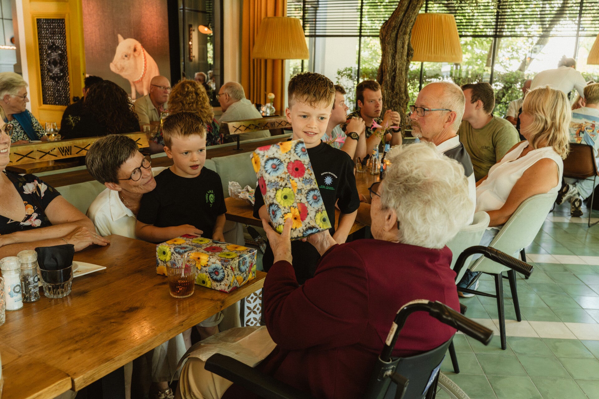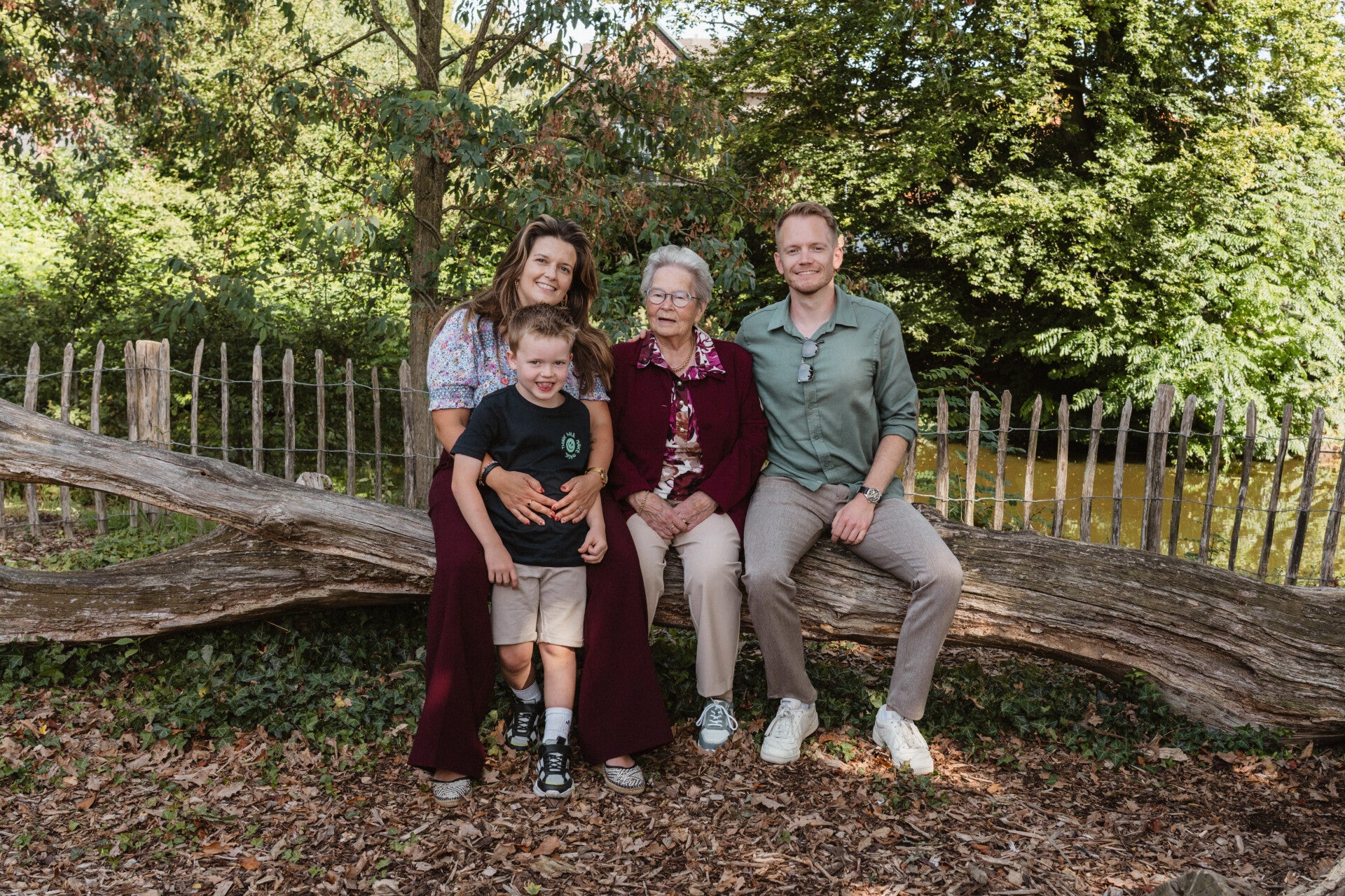 Na de verrassing volgde een gezellige familieshoot. Oma had al jaren geen recente foto’s meer van haar familie, dus dit moment was extra waardevol. Het was mooi om te zien hoe trots ze straalde tussen alle generaties, van haar kinderen tot de jongste achterkleinkinderen.